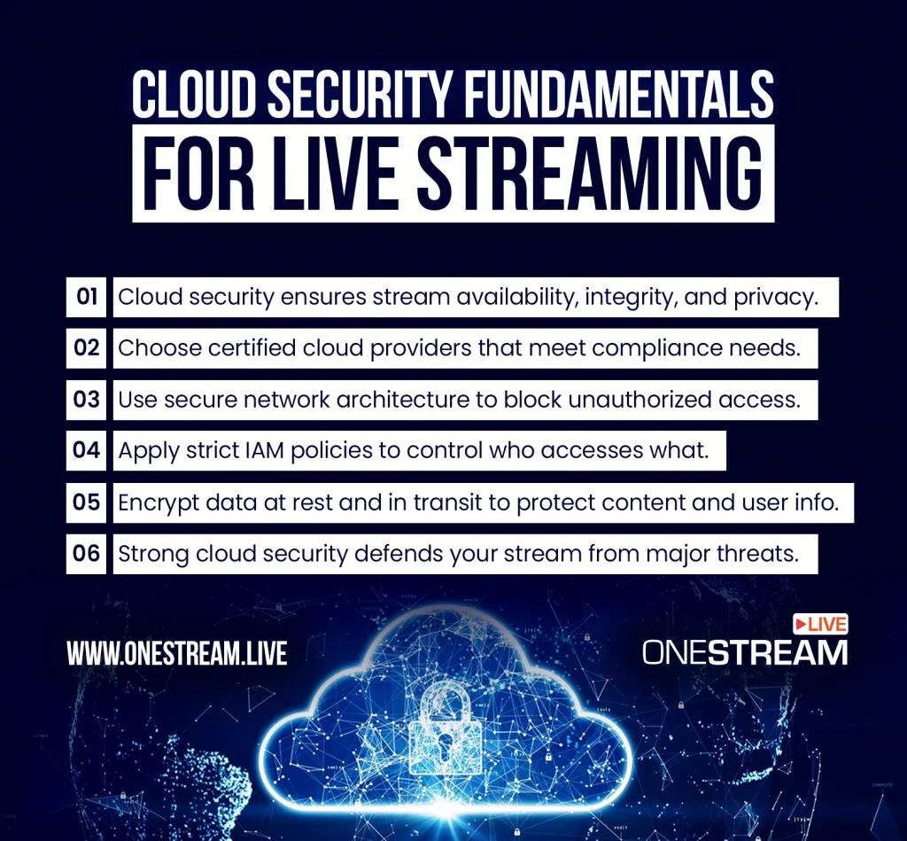 Cloud infrastructure makes it possible for live streaming services to work today. It’s very important to apply strong security measures that guarantee the availability, integrity, and privacy of your streams and user data in order to keep your live stream safe.