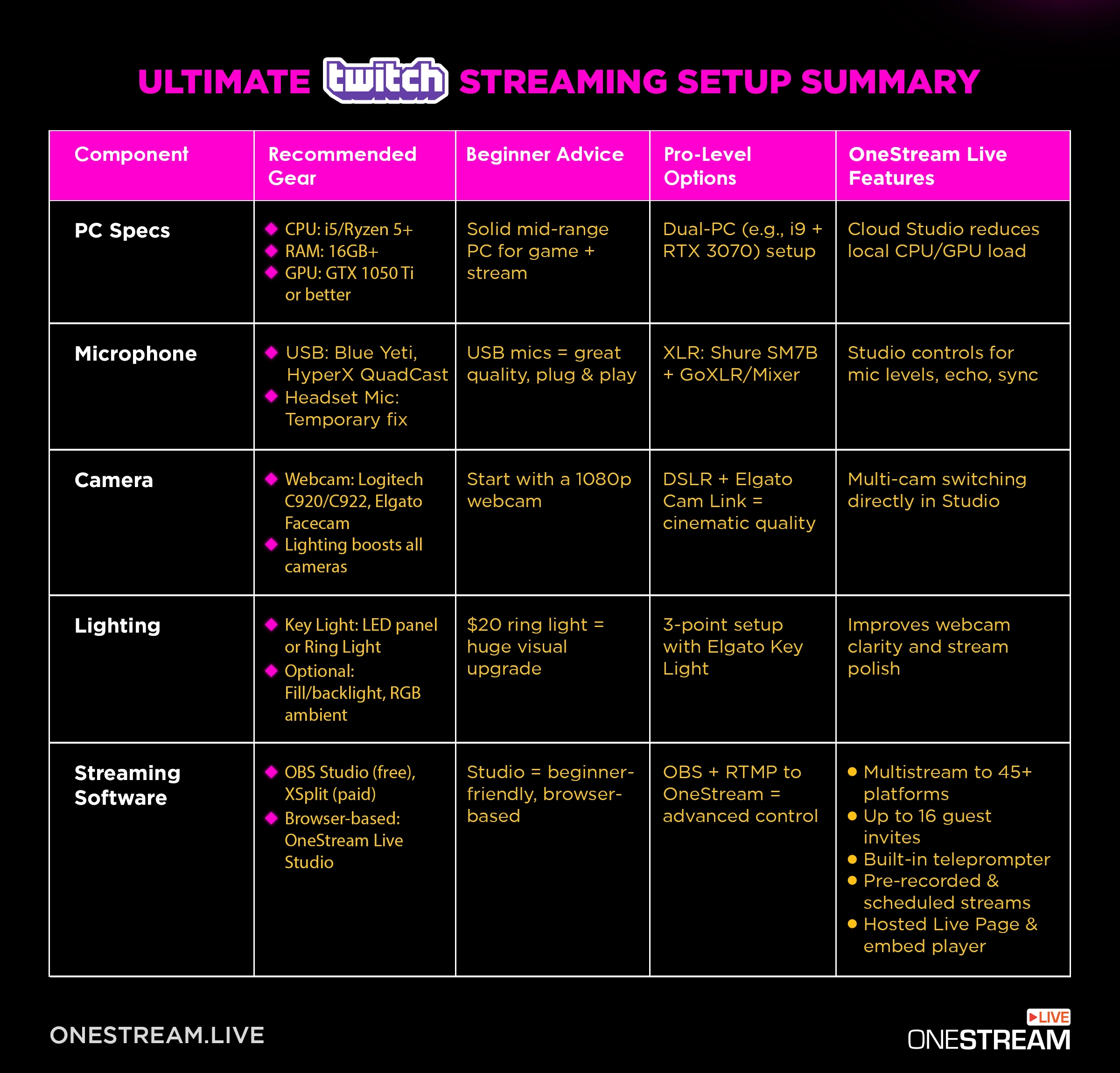 Best Streaming Setup for Twitch Gamers Using OneStream Live