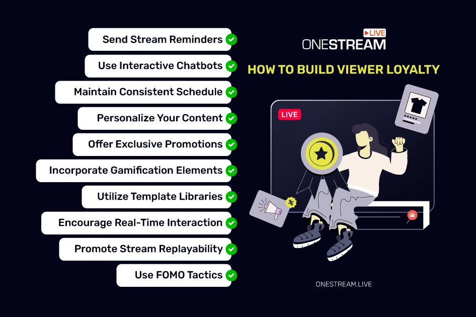 Through methods such as chatbots for live streams, stream reminders, and in-stream promotions, along with consistency and personalization, it is possible to create an atmosphere where your audience transforms into loyal viewers who keep coming back. Utilizing tools such as OneStream Live and makes the process of nurturing viewer loyalty easier and more effective.