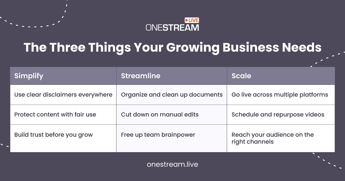 Platforms like OneStream Live are transforming the terrain for businesses seeking to amplify their voice while minimizing their current stress. By managing multiple platforms at once – from your website to LinkedIn to YouTube – you’re not just teaching more people. You’re building a connected system of presence.