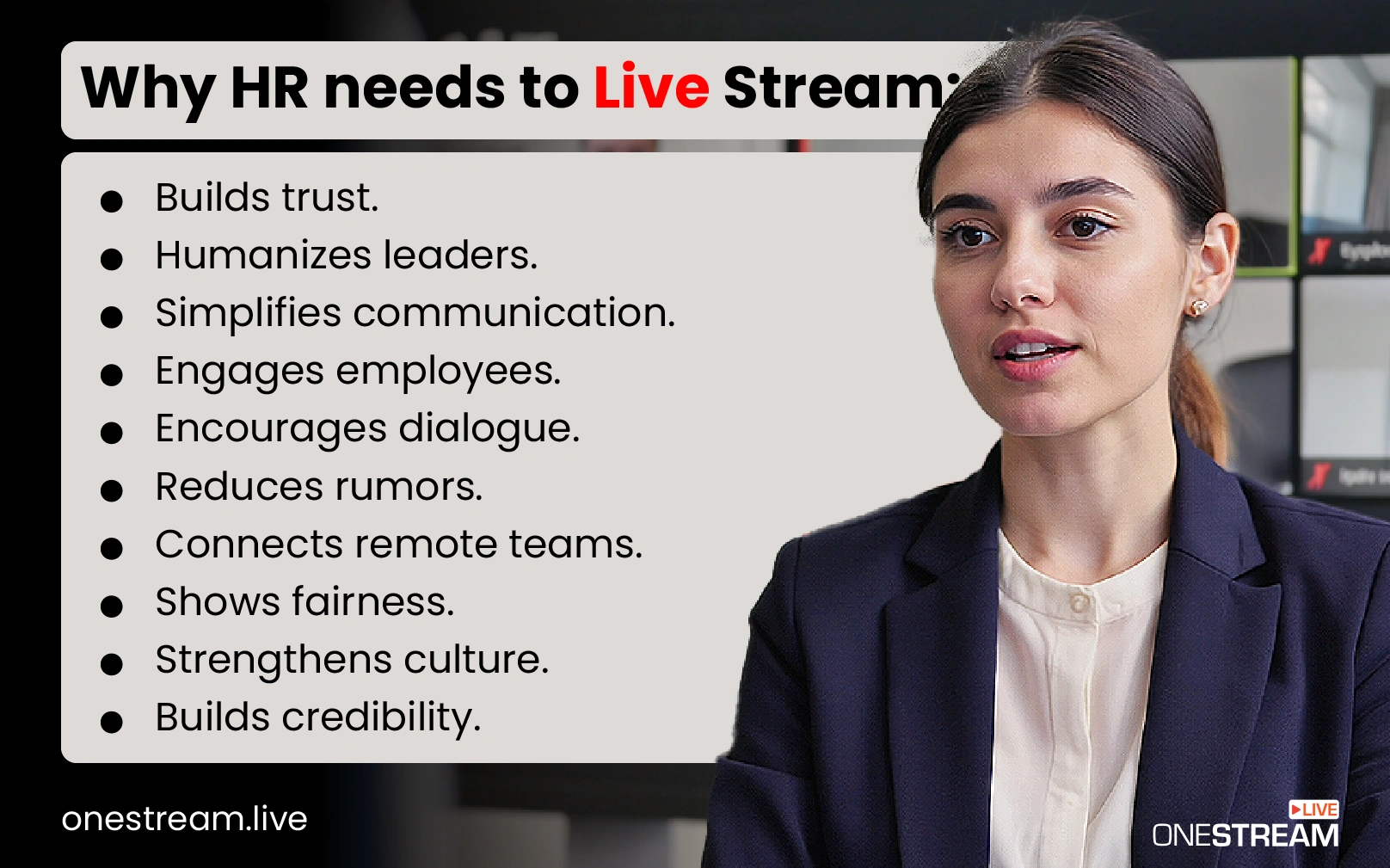 Compare that to the old way: concerns would swirl quietly, or an individual might email HR and wait days for an answer, by which time half the office may have formed the wrong impression. Live streaming for business turns that dynamic around by squashing misinformation in real time.