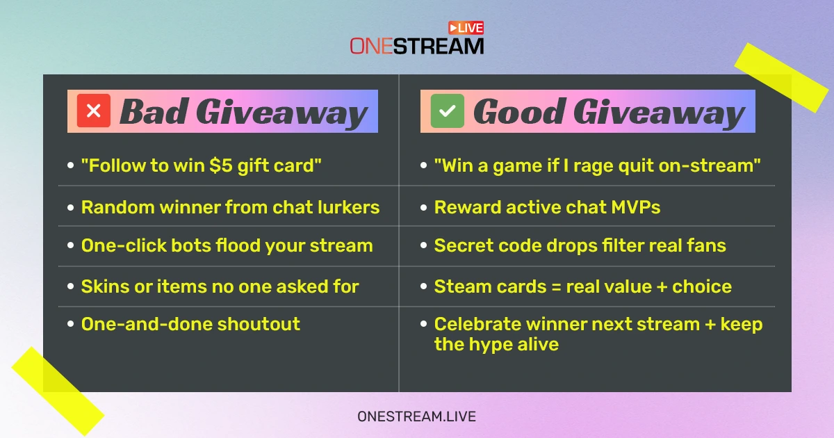 Because let’s face it: bad giveaways are everywhere. Good ones? Rare. And the difference almost always comes down to how it’s done, not what gets handed out. Smart giveaways can transform passive viewers into loyal fans.