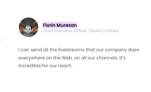 As Florin Muresan, CEO of Squirrly, said about OneStream Live, “I can send all the livestreams that our company does everywhere on the Web, on all our channels. It’s incredible for our reach.”