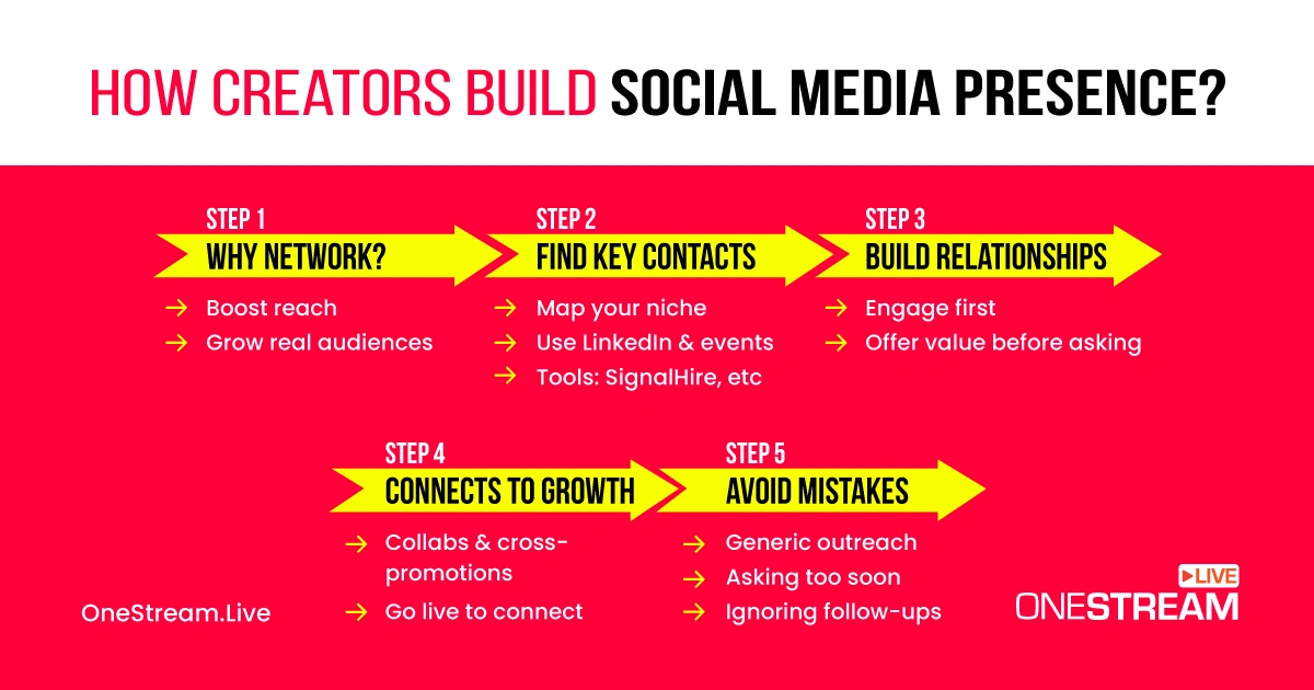 Platforms like OneStream Live, for instance, let creators stream simultaneously across multiple networks, turning a single live session into a cross-platform networking opportunity that’s impossible to ignore.