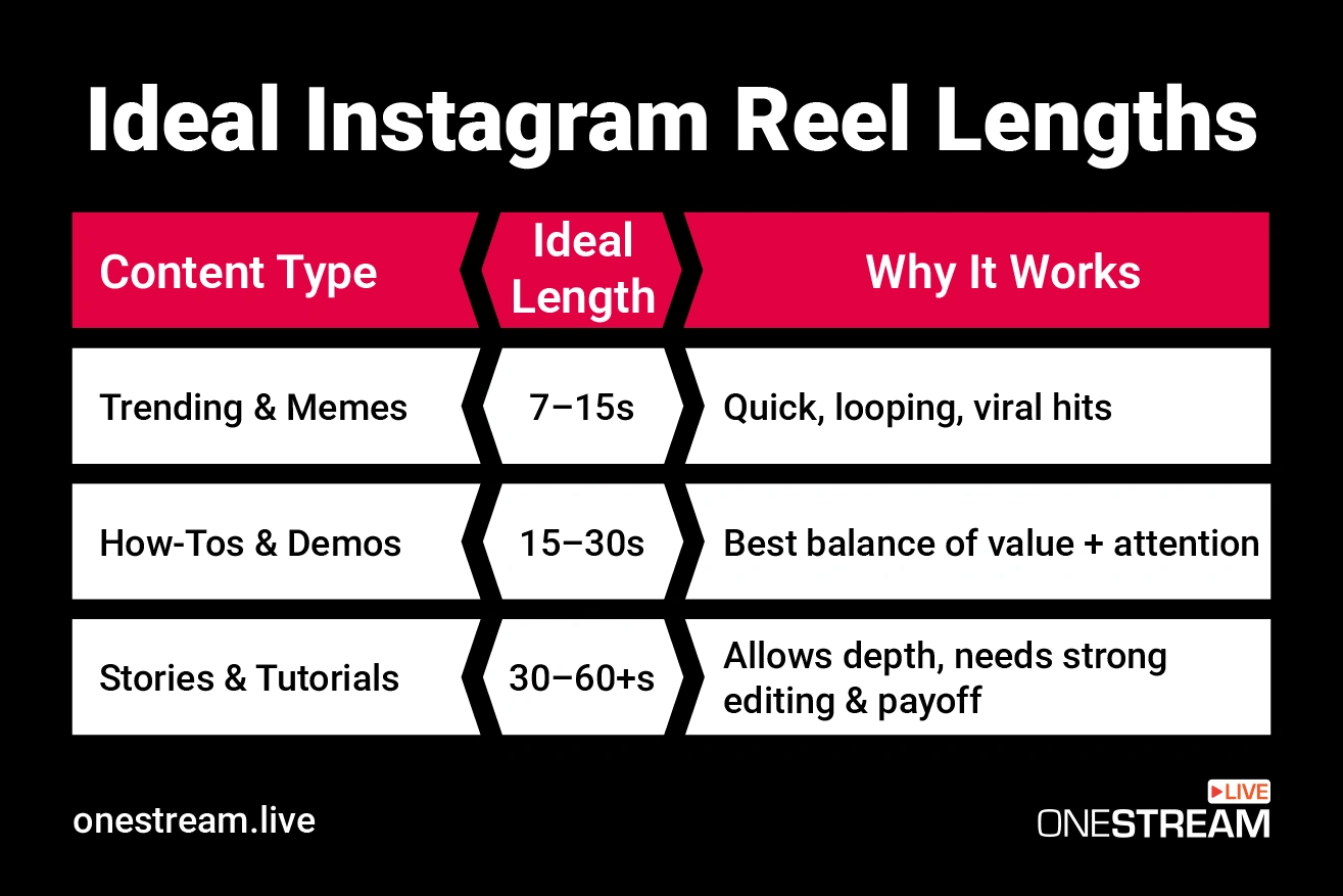 The key is to match the Reel length to the content’s purpose.