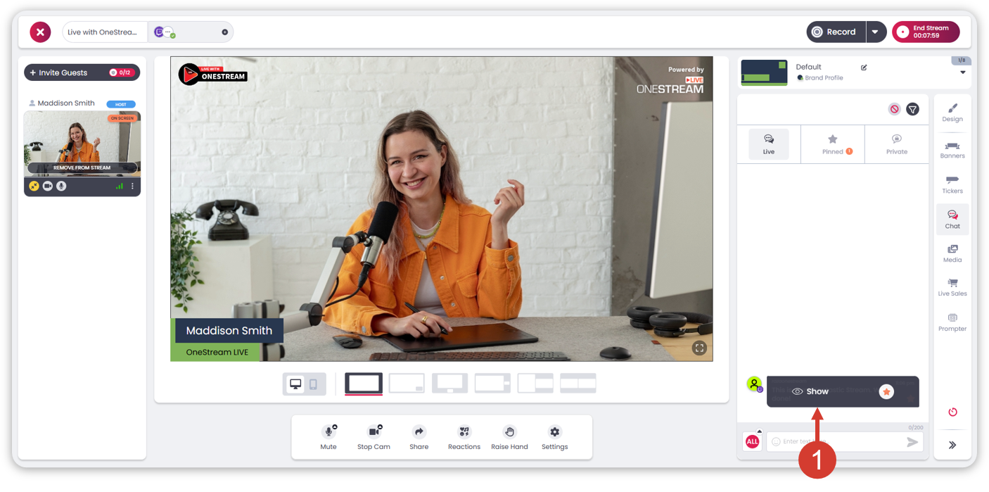 1. While your OneStream Live Studio session is live, click Chat on the right sidebar.