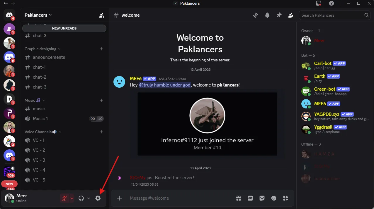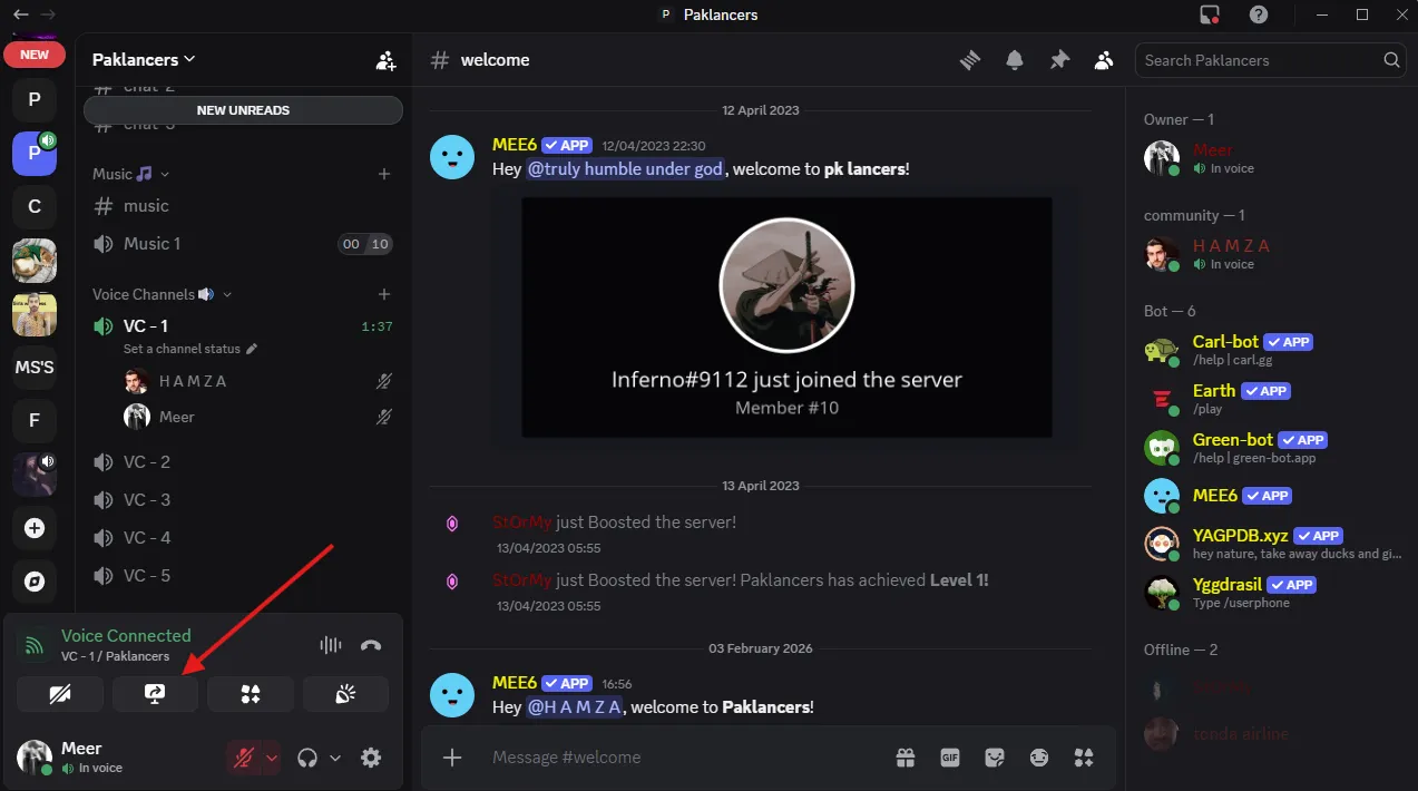 Step 1 – To stream on a server, you need to join a channel by selecting the specific server from the left sidebar, like this: