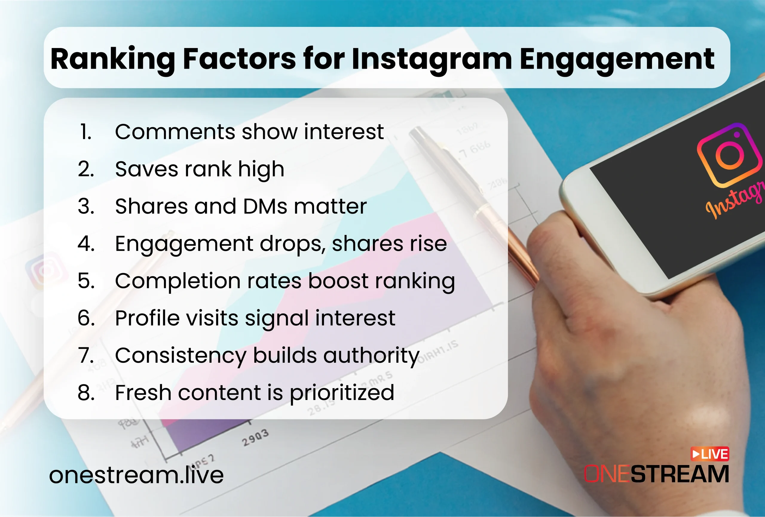 Let’s summarize the key ranking signals that every creator should know. These apply across Feed, Reels, Stories, and Explore in slightly different ways: