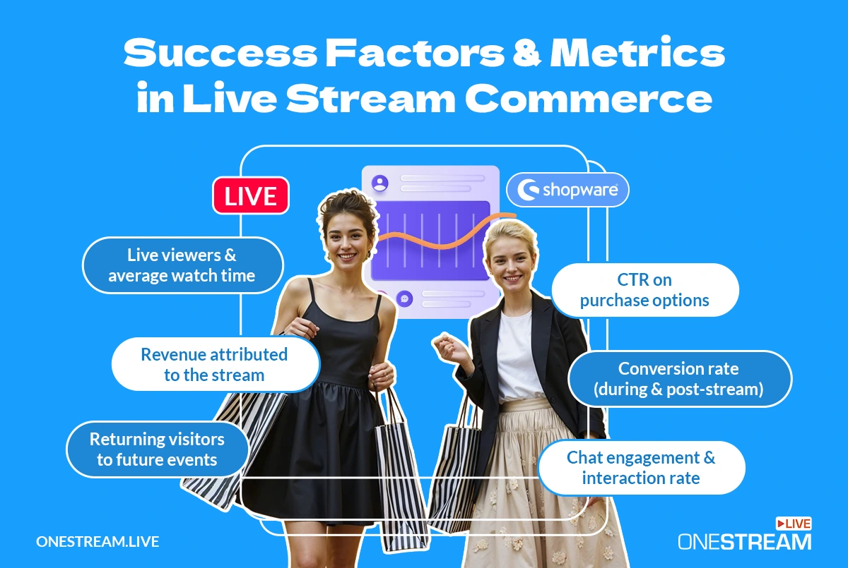 To evaluate the impact of live streams in your shop, clear KPIs are needed. These include: