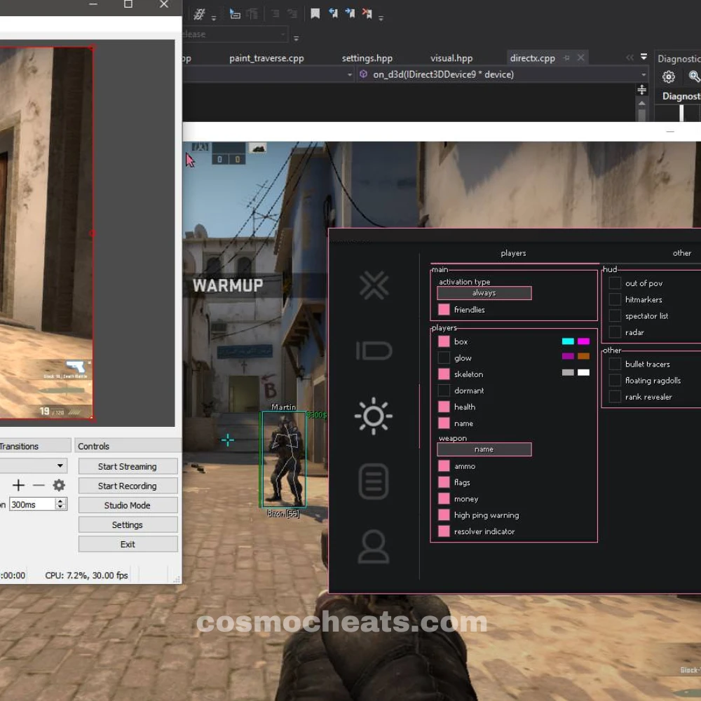 ESP overlays display enemy positions on a second layer unseen by capture software. This means that even if the cheater is live streaming via Twitch, YouTube, or OneStream Live, the hacks are invisible to the audience.