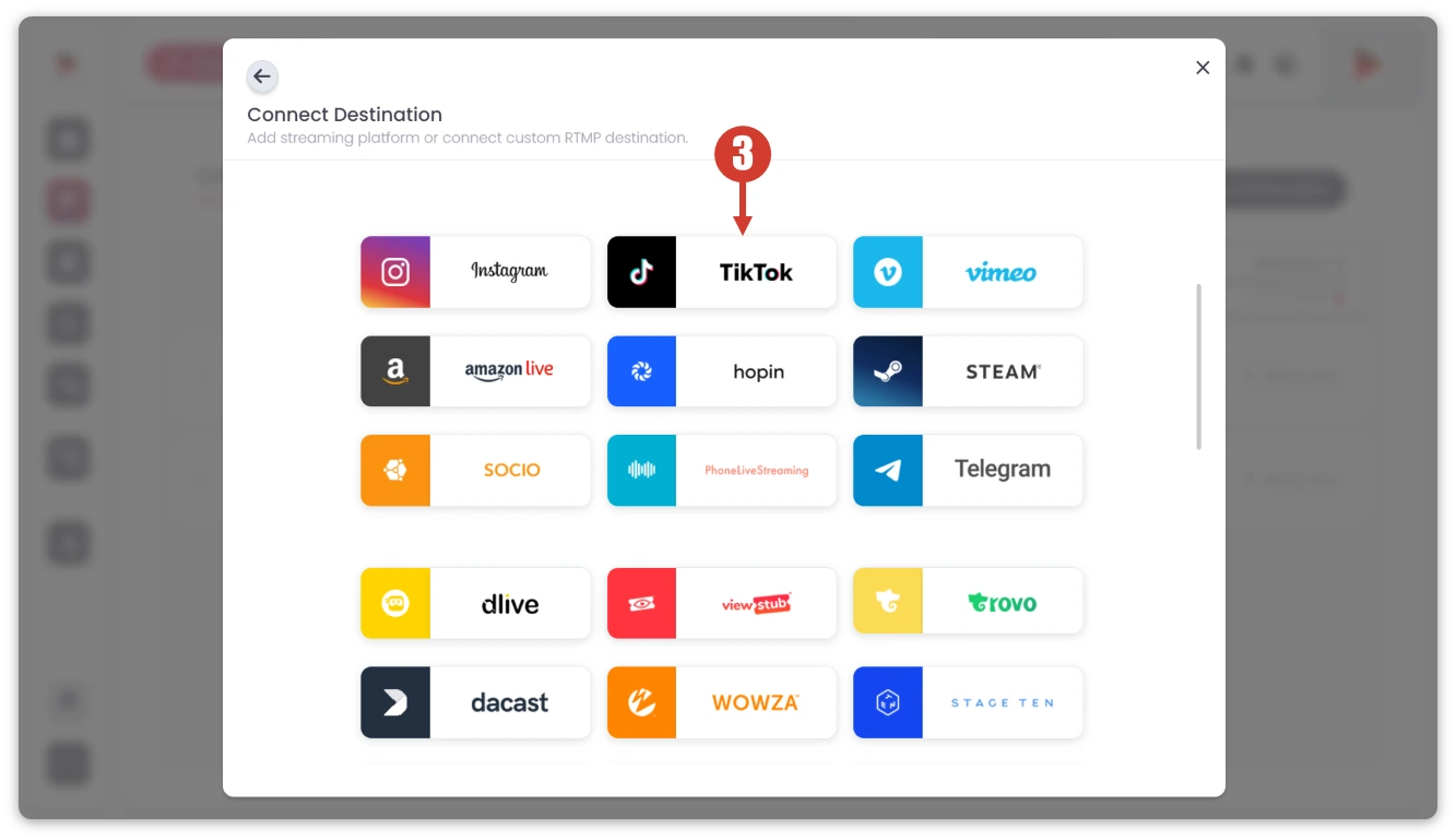 OneStream Live is an all-in-one cloud-based streaming solution that allows you to multistream and schedule live videos to over 45+ platforms (TikTok included). If you have your stream key from TikTok in hand, OneStream Live makes it super simple to go live on TikTok.