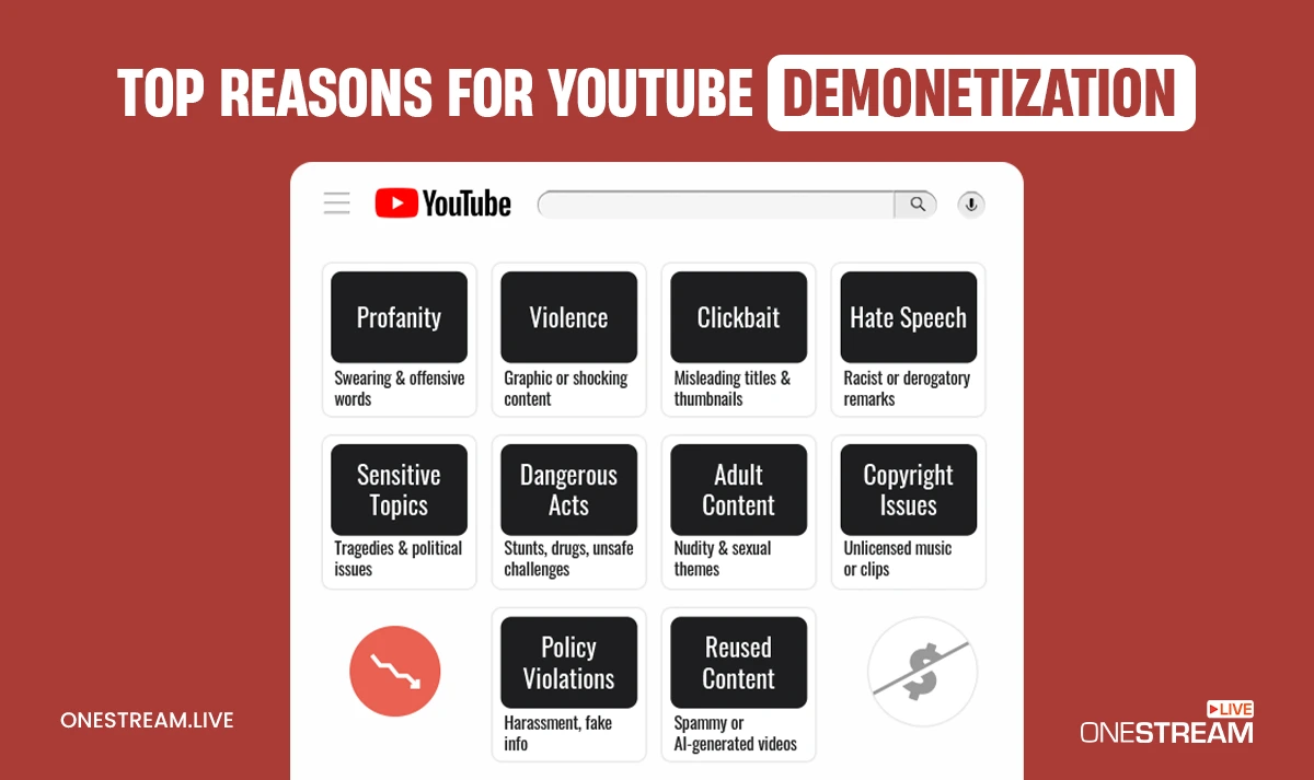 In this comprehensive guide, we’ll explore what causes demonetization on YouTube, how to stay on the right side of YouTube’s rules, and practical tips to protect your channel’s monetization. As a content creator (especially if you stream with OneStream Live to YouTube), these insights will help you understand YouTube’s policies with confidence.